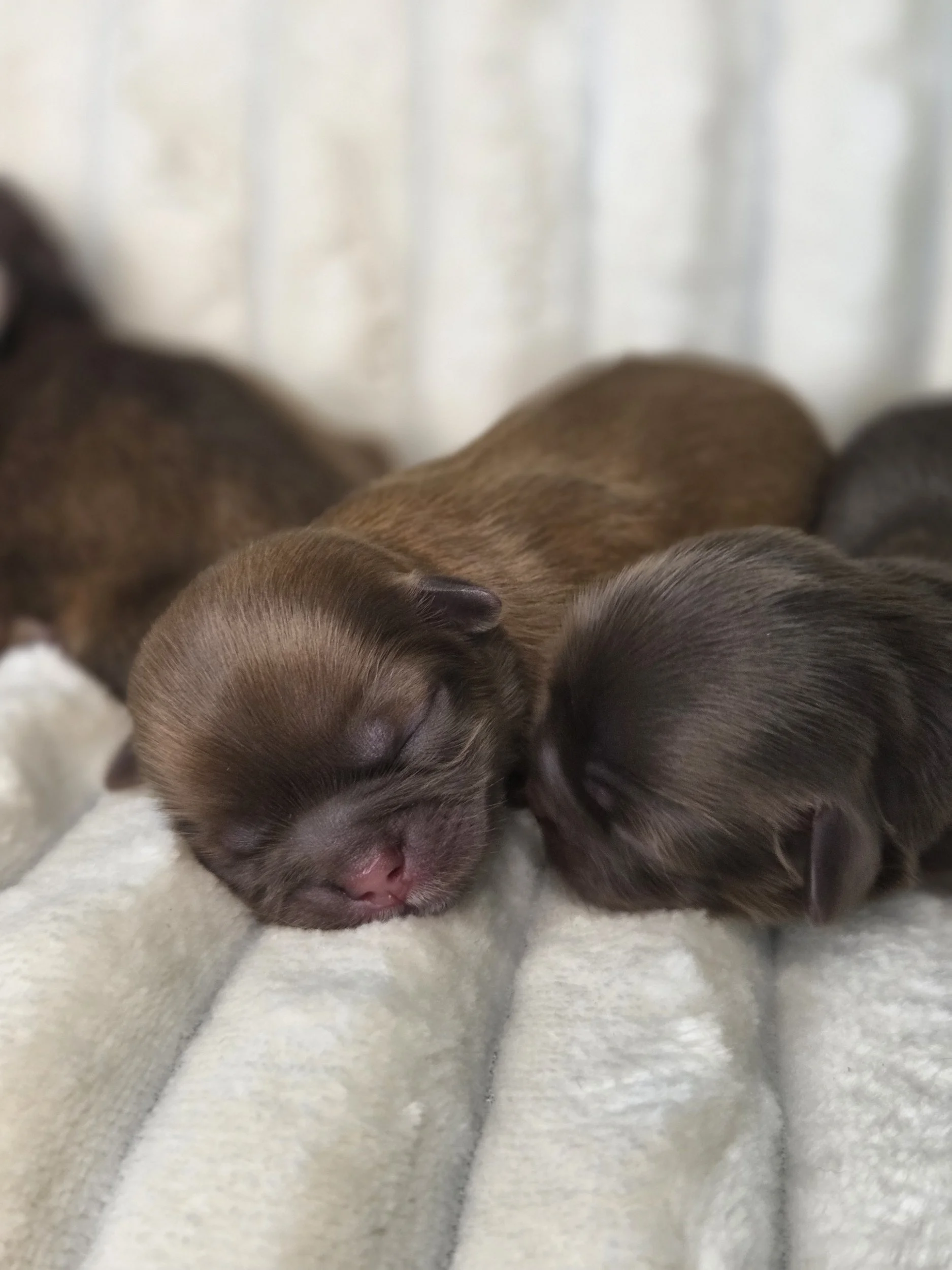 We are so excited to announce that our beautiful Ginger welcomed her Spring 2026 litter on April 7th, 2026! This litter features stunning red and chocolate sable Shih Tzu puppies; a rich color that transforms as they grow.